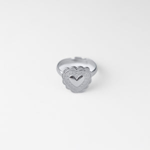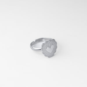 Questo elegante anello in acciaio inossidabile presenta un cuore traforato al centro, incorniciato da dettagli incisi che richiamano motivi floreali. Il design delicato e romantico lo rende un accessorio ideale per aggiungere un tocco di dolcezza e stile a qualsiasi outfit. Perfetto per regali speciali o per celebrare momenti significativi, è un simbolo di affetto e amore.
