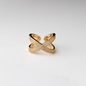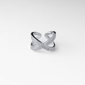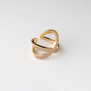Anello elegante, caratterizzato da un design intrecciato che crea un effetto a croce. La superficie è arricchita da una fila di piccoli dettagli brillanti, conferendo un tocco di lucentezza e raffinatezza. Ideale per aggiungere un elemento di stile sofisticato a qualsiasi outfit. Perfetto per occasioni speciali o per un tocco di eleganza quotidiana.