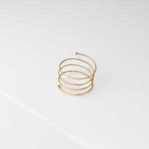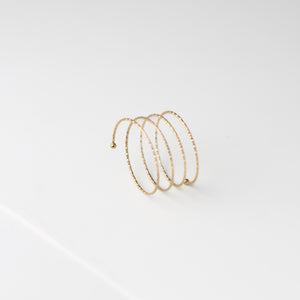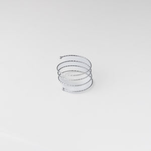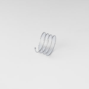 Un elegante Anello Vortice Di Luce Small, caratterizzato da una finitura lucida. Questo design minimalista e moderno si avvolge intorno al dito, creando un look sofisticato e unico.