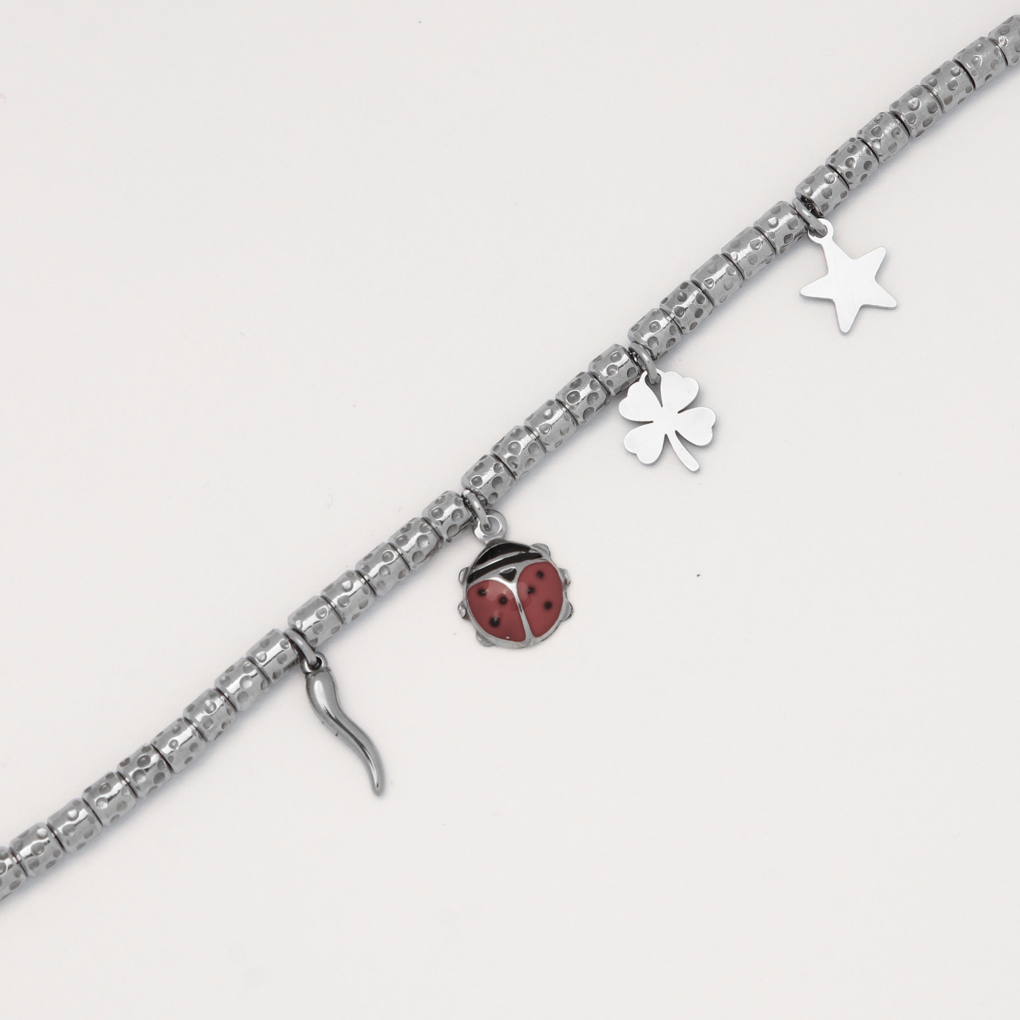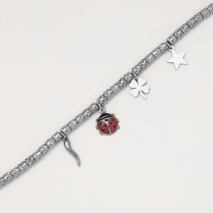 - Ciondoli: Coccinella, Ferro di Cavallo, Stella, Quadrifoglio, Cornetto