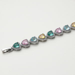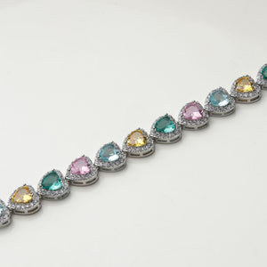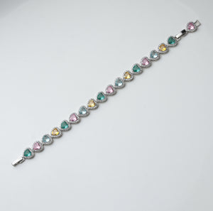 Questo bracciale cuori multicolore è l'accessorio ideale per aggiungere un tocco di romanticismo e vivacità al tuo look. Perfetto come regalo per una persona speciale o come pezzo distintivo nella tua collezione di gioielli. Indossalo per esprimere il tuo stile unico e raffinato.