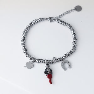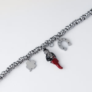 Questo bracciale portafortuna con ciondoli è l'accessorio ideale per chi desidera combinare stile e significato. Perfetto come regalo per una persona speciale o come portafortuna personale. Indossalo ogni giorno per attirare la buona sorte e per completare il tuo look con un tocco di raffinatezza e simbolismo.