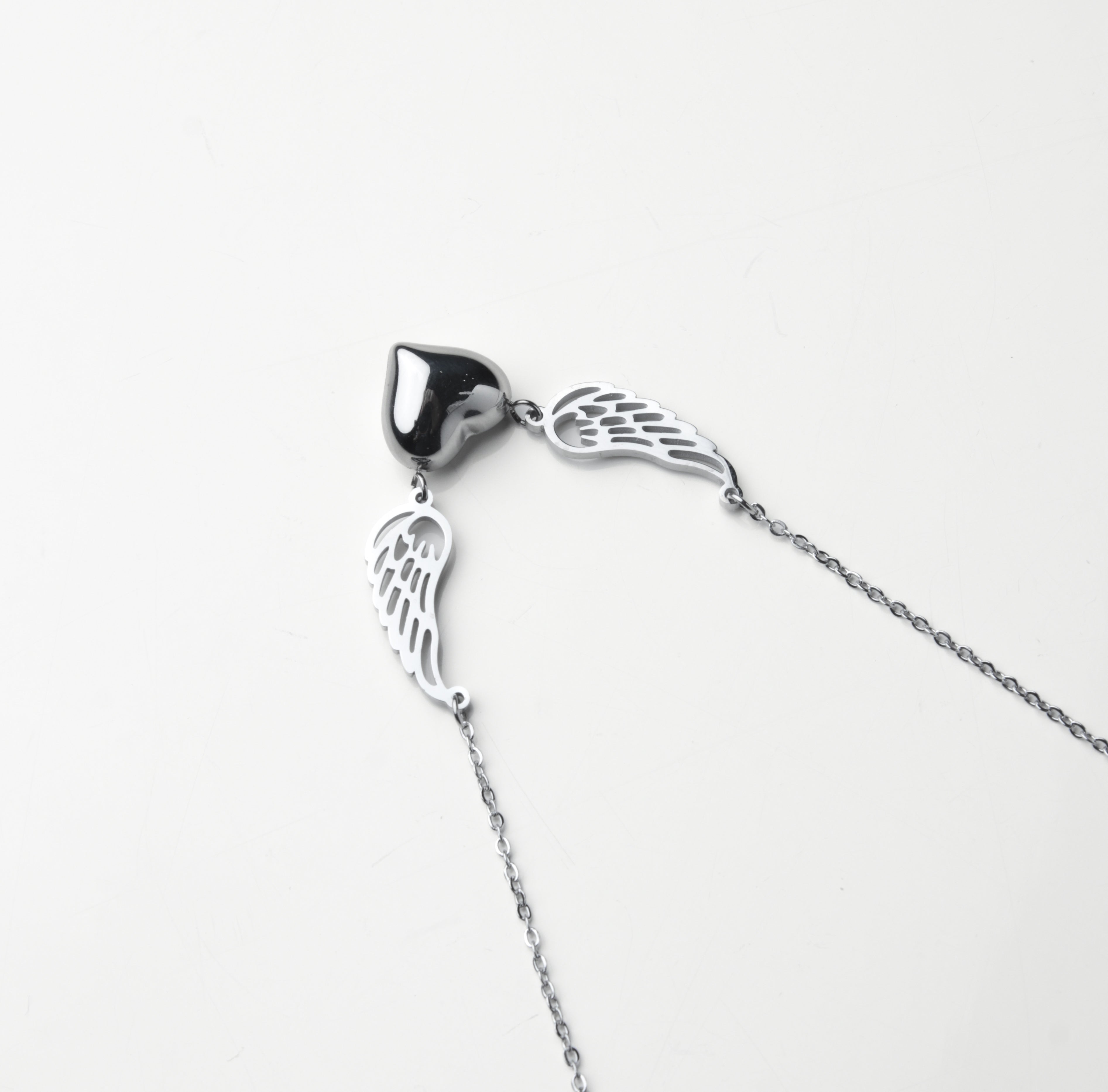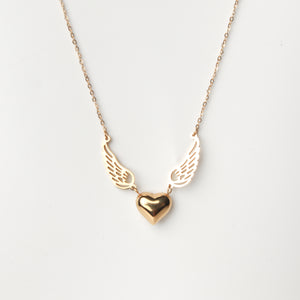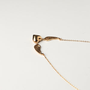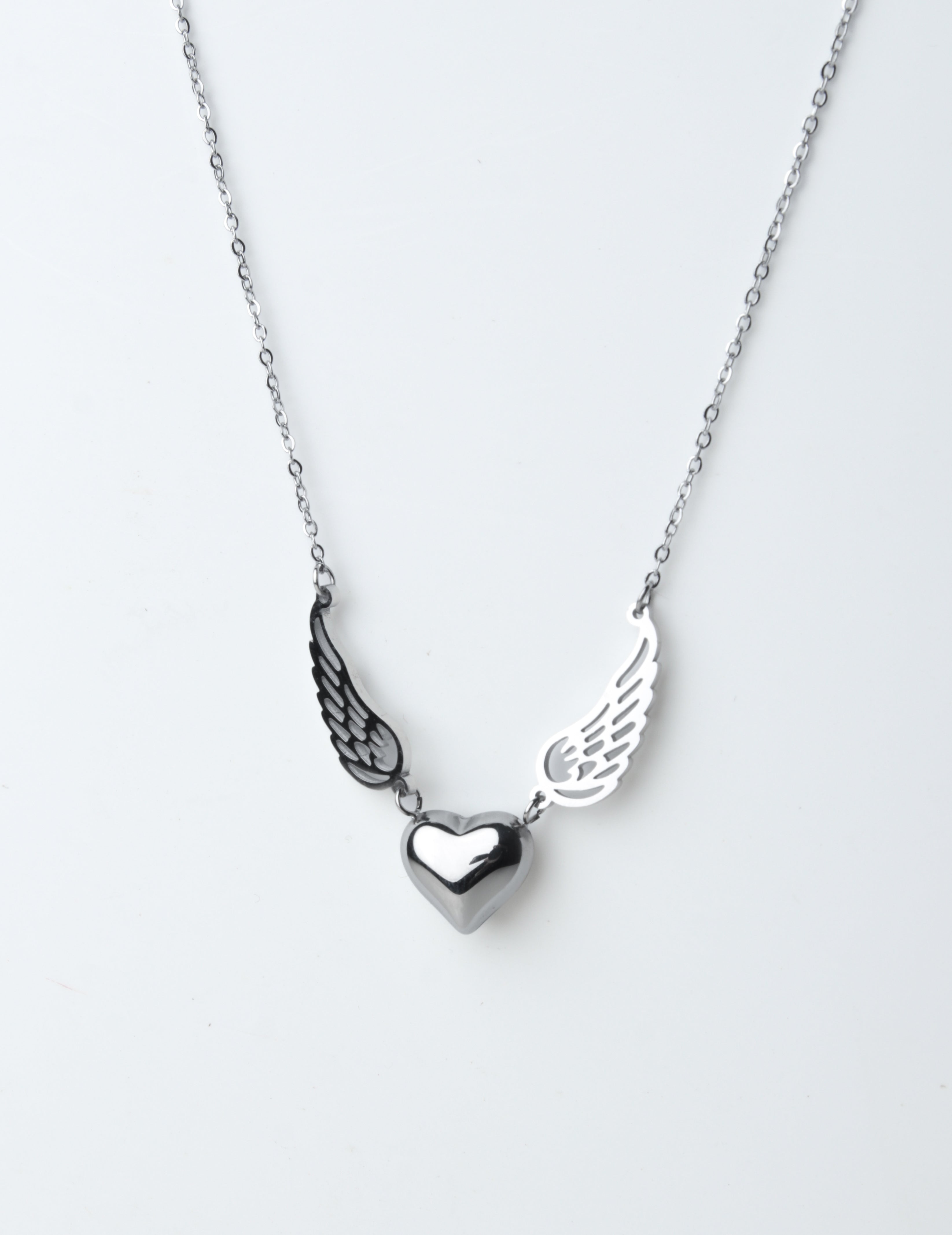 Descrizione: Esprimi il tuo amore e la tua libertà con la nostra collana Cupido in ottone. Questo elegante ciondolo presenta un cuore centrale lucido, affiancato da due ali dettagliate, simbolo di amore e protezione. La catena sottile in ottone placcato oro aggiunge un tocco di raffinatezza, rendendo questa collana perfetta per qualsiasi occasione. La chiusura regolabile a moschettone garantisce una vestibilità comoda e sicura.