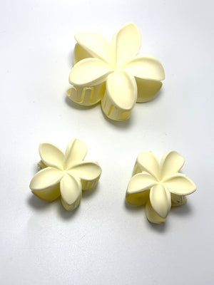 Set composto da tre fermagli per capelli in plastica rigida.
