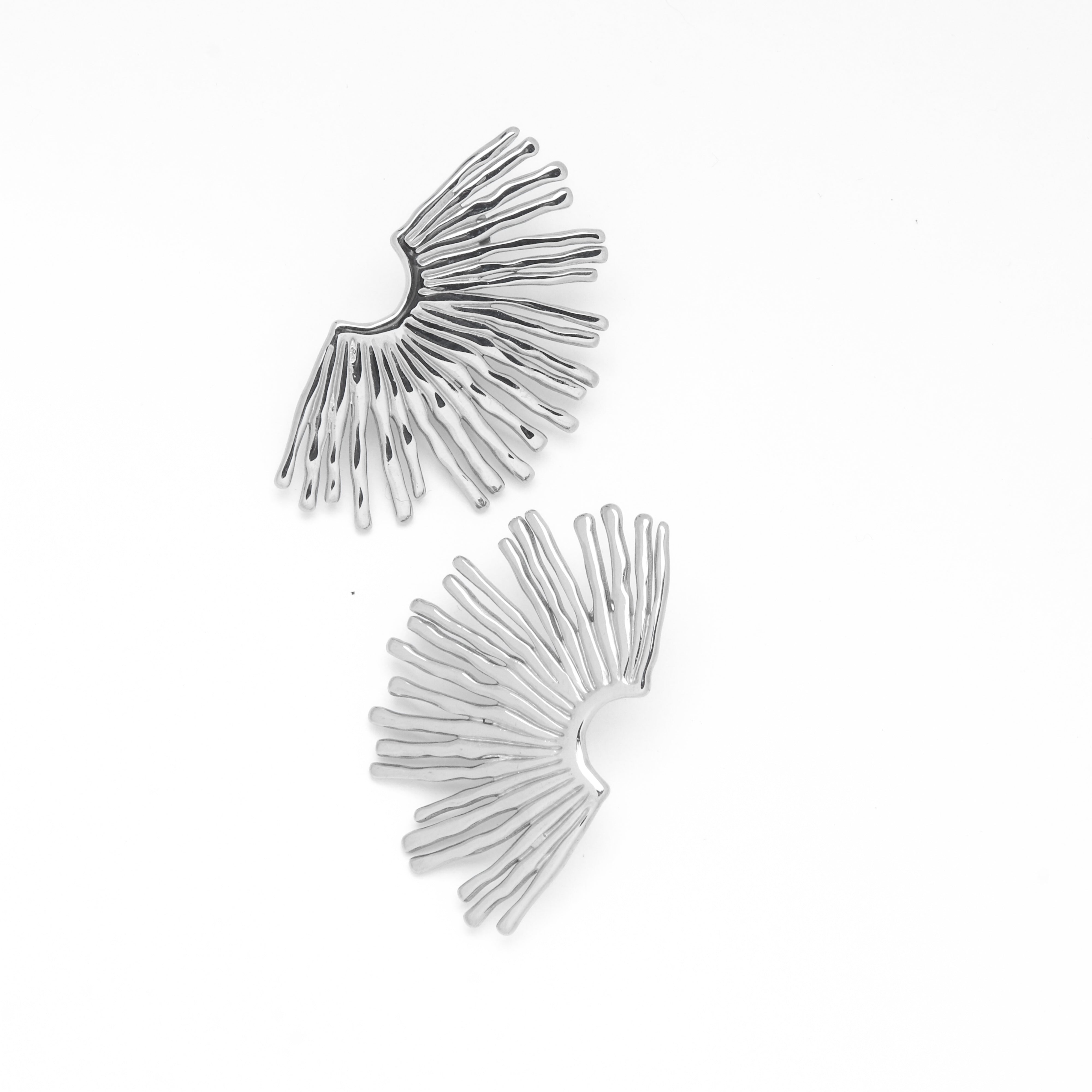 Aggiungi un tocco di eleganza moderna e audace al tuo stile con questi orecchini a ventaglio. Ideali come regalo per una persona speciale o per arricchire la tua collezione di gioielli, questi orecchini sono un pezzo unico che catturerà sicuramente l'attenzione.