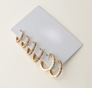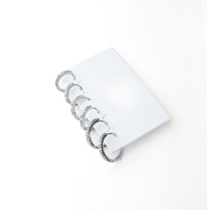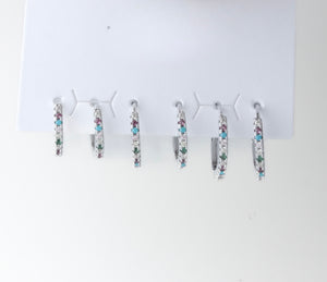 Il Set Annalisa è composto da una raffinata selezione di orecchini a cerchio silver con pietre colorate che aggiungono un tocco di vivacità e eleganza a ogni look. Ogni orecchino è impreziosito da una combinazione di pietre turchesi, viola, verdi e bianche, incastonate con cura su una base argentata per un effetto luminoso e sofisticato.