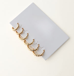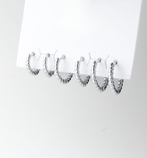 Ogni orecchino presenta una texture delicata che aggiunge un tocco di eleganza e luminosità, perfetto per completare qualsiasi look, sia casual che formale. Ideali per chi ama uno stile sobrio ma chic, questi cerchietti sono un must-have nel guardaroba di ogni amante dei gioielli.