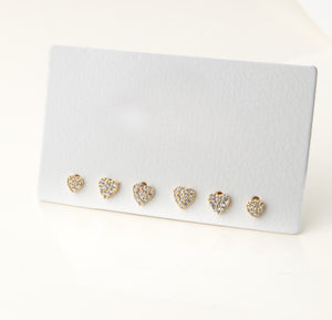 Il Set Cuoricini è un incantevole assortimento di orecchini in bijou color silver o gold, caratterizzato da piccoli cuori scintillanti tempestati di pietre luminose.